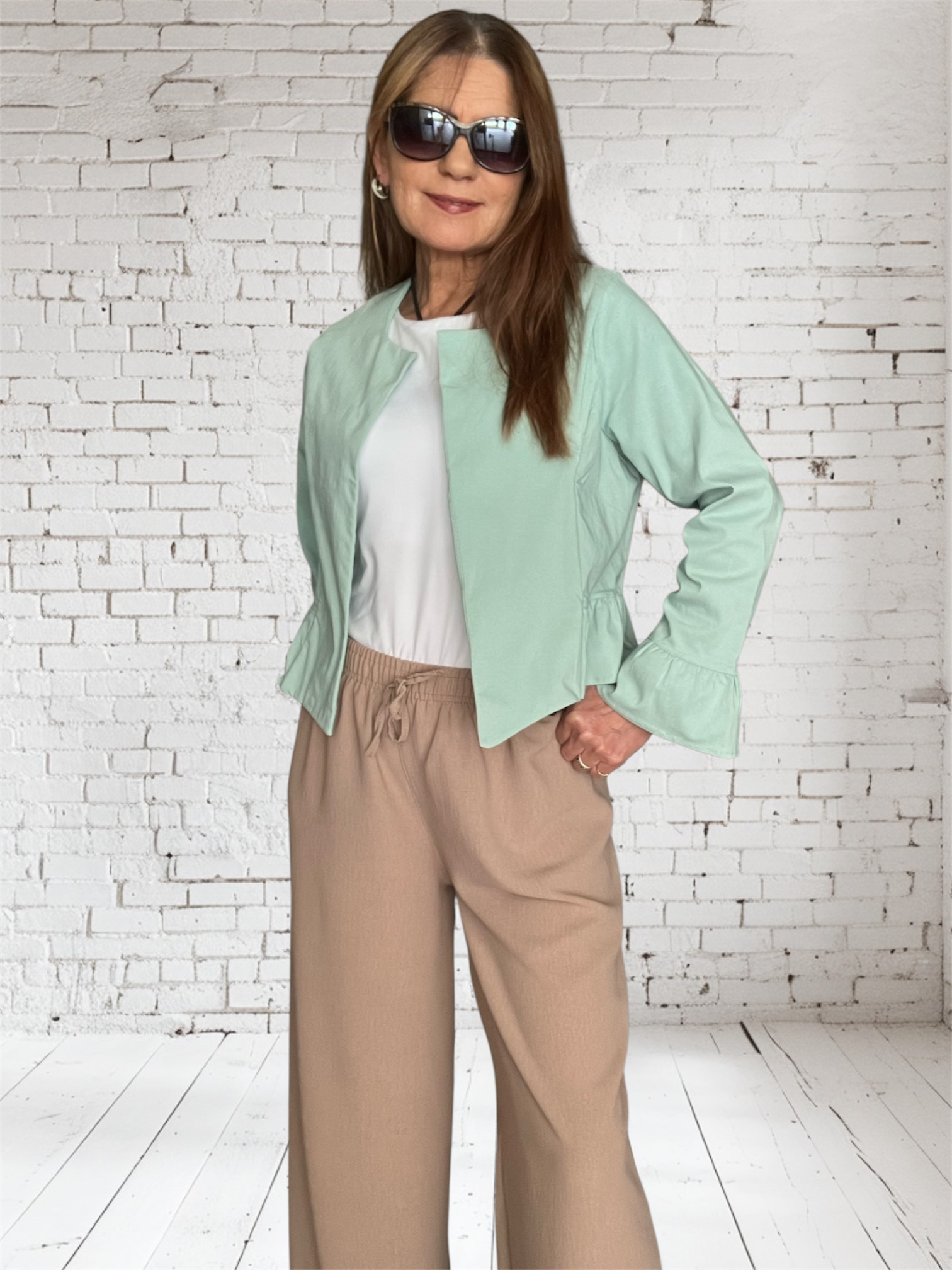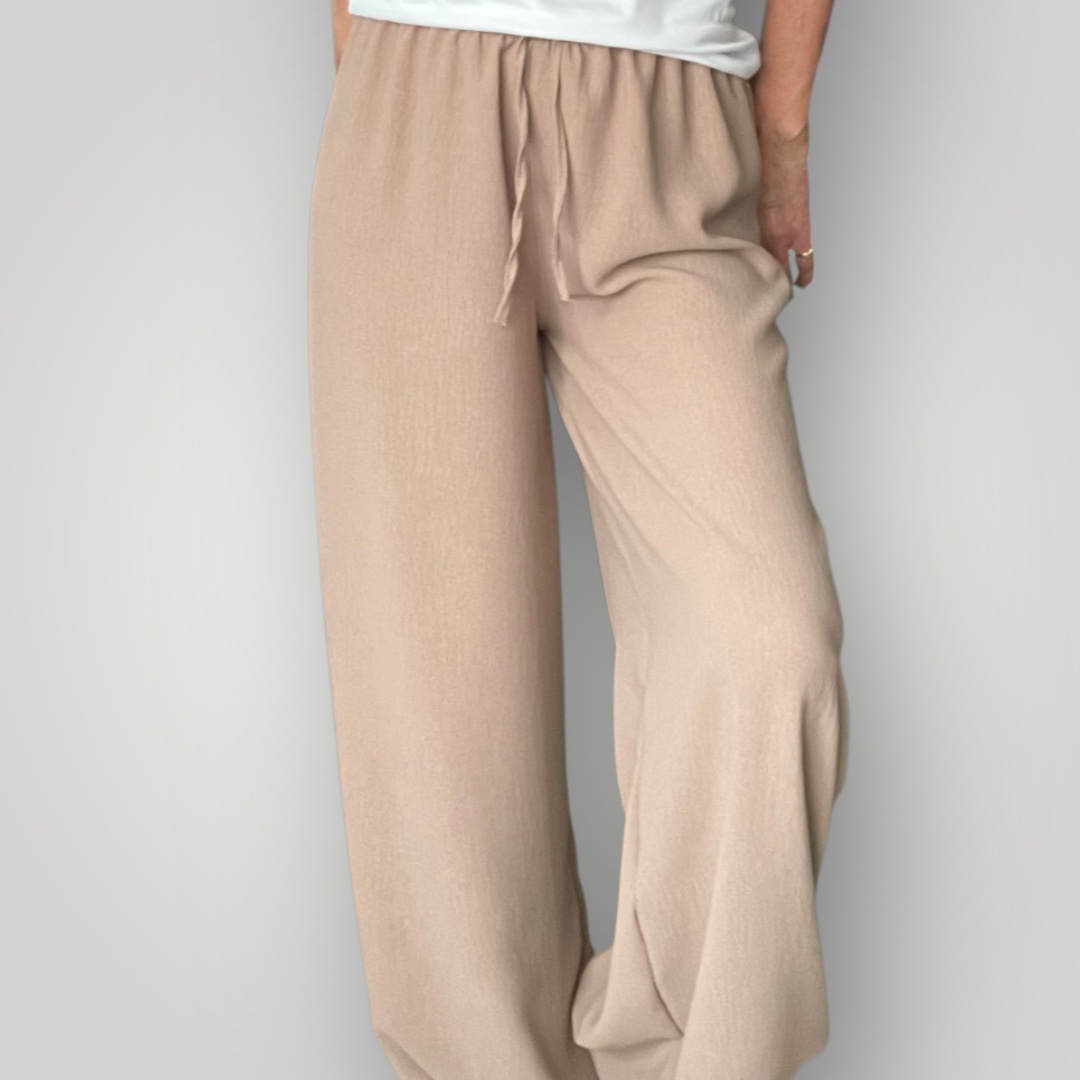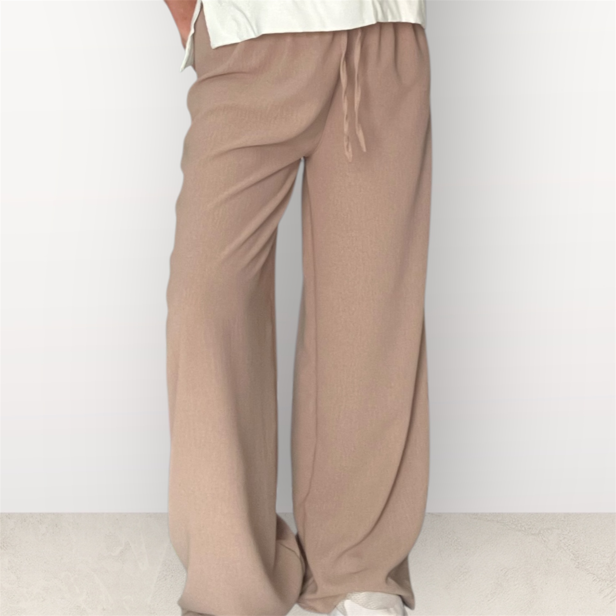 Pantalón Palazzo con cintura elástica y lazo, confeccionado en crépe liviano con caída elegante y un calce favorecedor. Gracias a su diseño versátil, puede usarse con blusas, camisas o remeras para looks tanto casuales como sofisticados. Su material fluido y cómodo lo convierte en una opción ideal para todo el día.